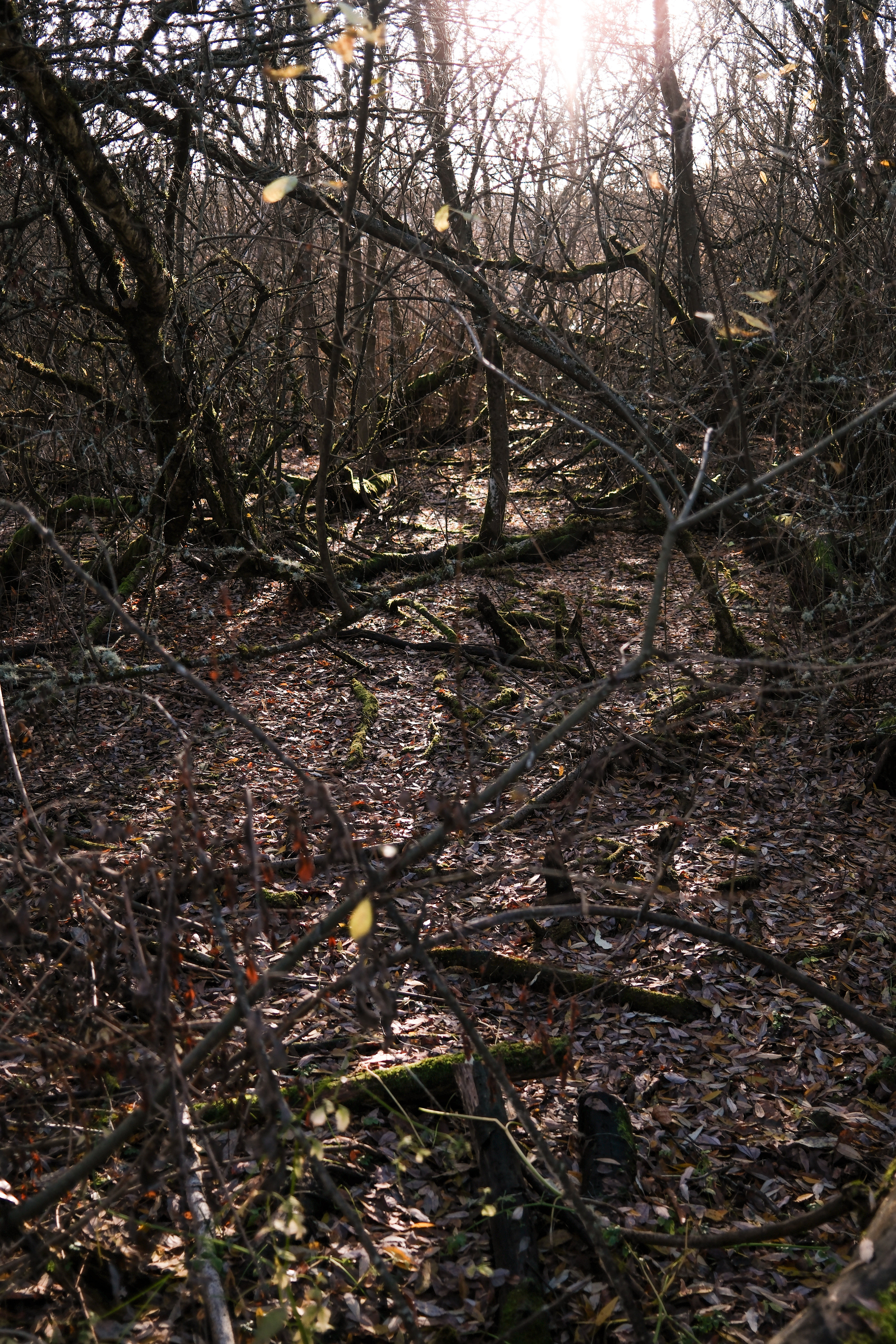 Throwing a rock he packed from the arboretum into a hole in a floating log to see if anything magical happens