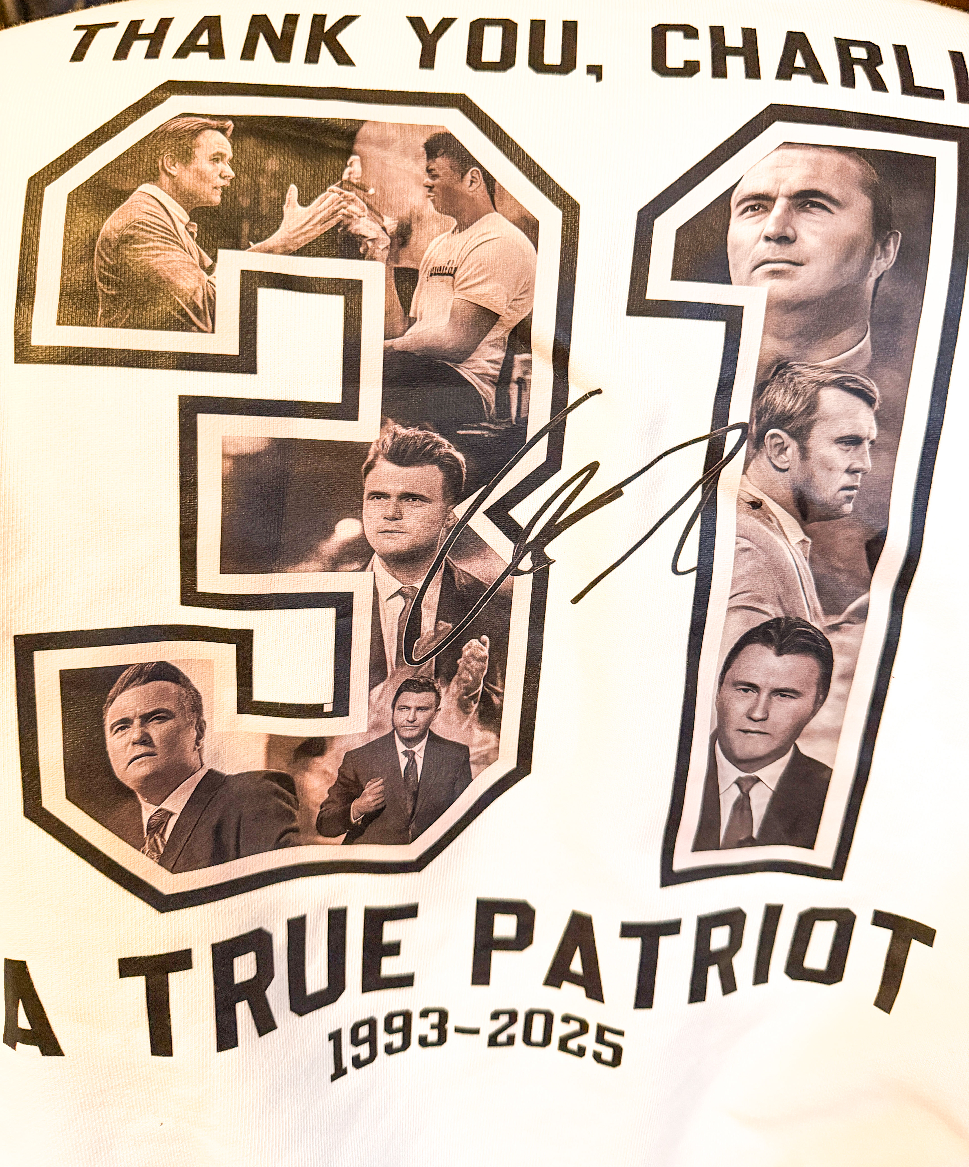 One of my friends sent this insane sweatshirt with AI Charlie Kirks because the maker wanted to cash in but probably was afraid of getting sued