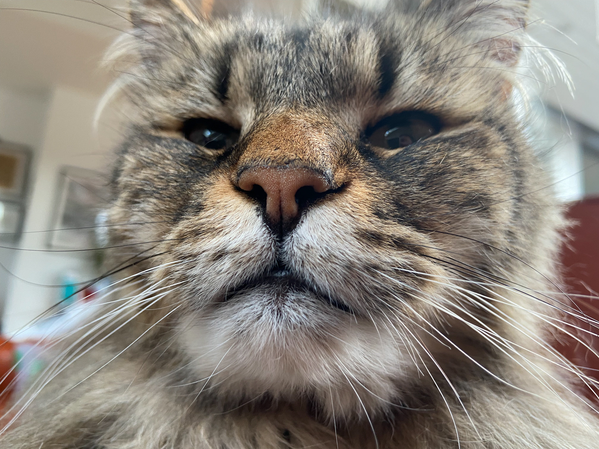 If you lie down on the couch Oscar will jump on you and stare at you like this.