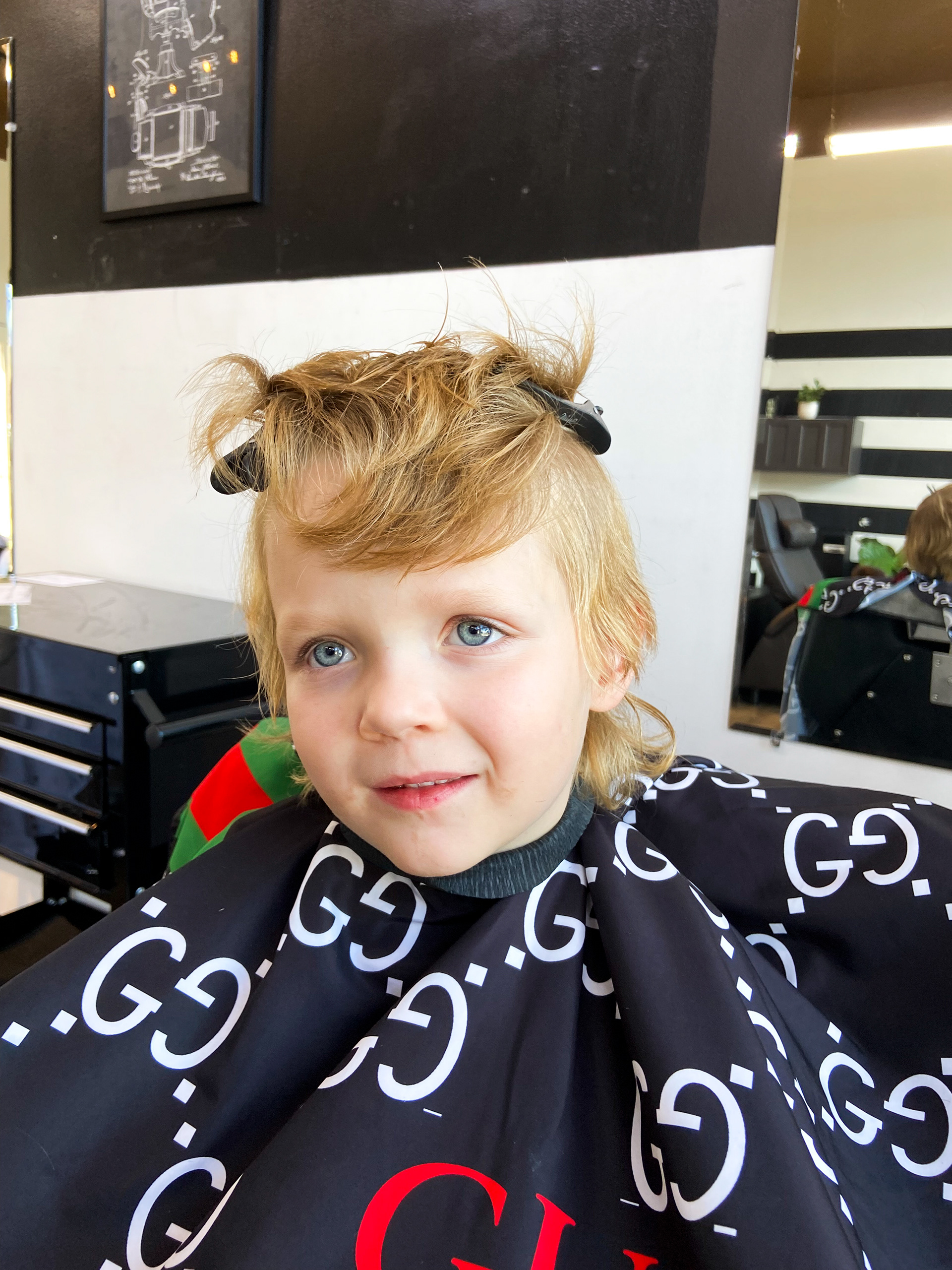 Getting a haircut at the local barber, aptly named Hugo's Barber Shop