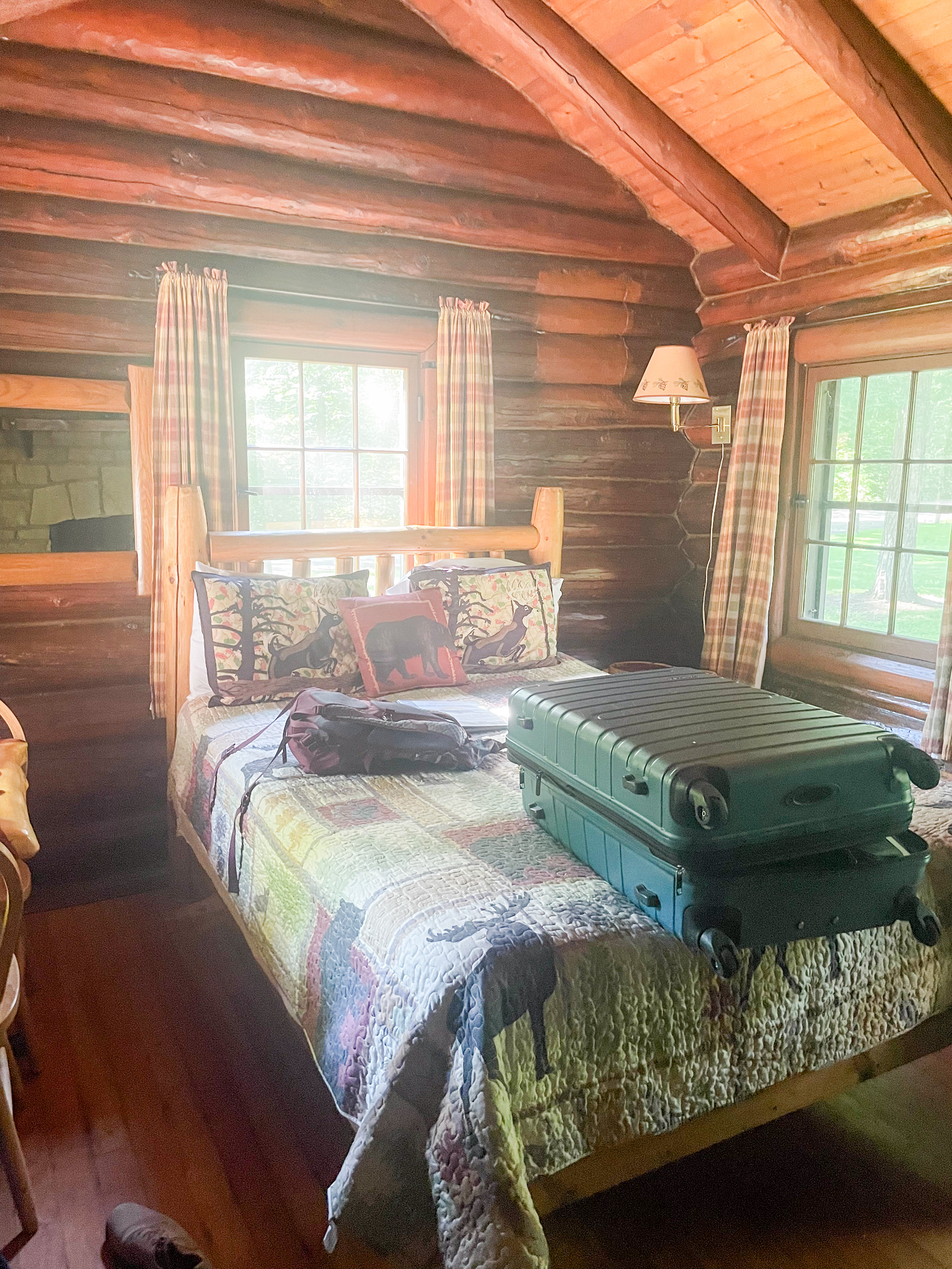 The reception took place on a lovely old public works cabin campground site so we got a cabin.